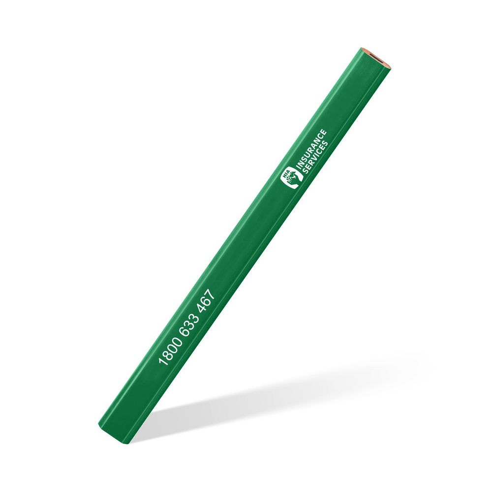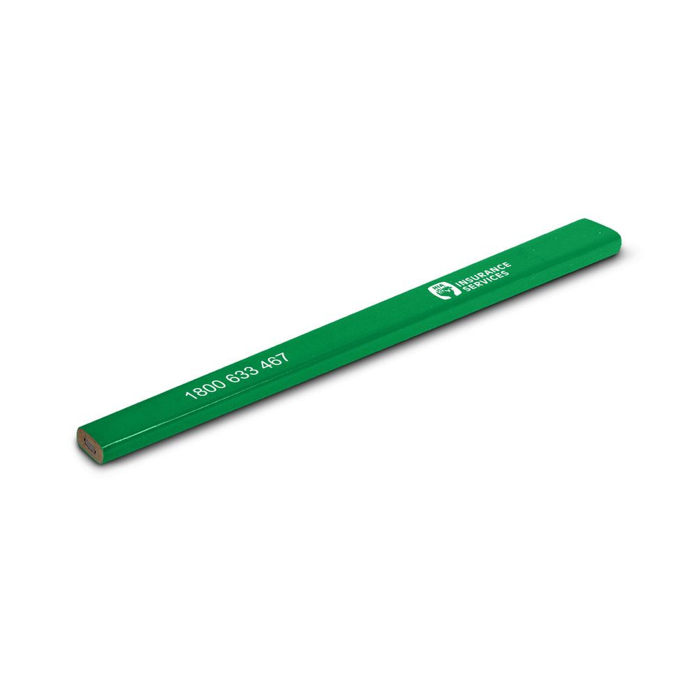 Rectangular shaped carpenters pencil in green with HIAIS Logo and 1800 number